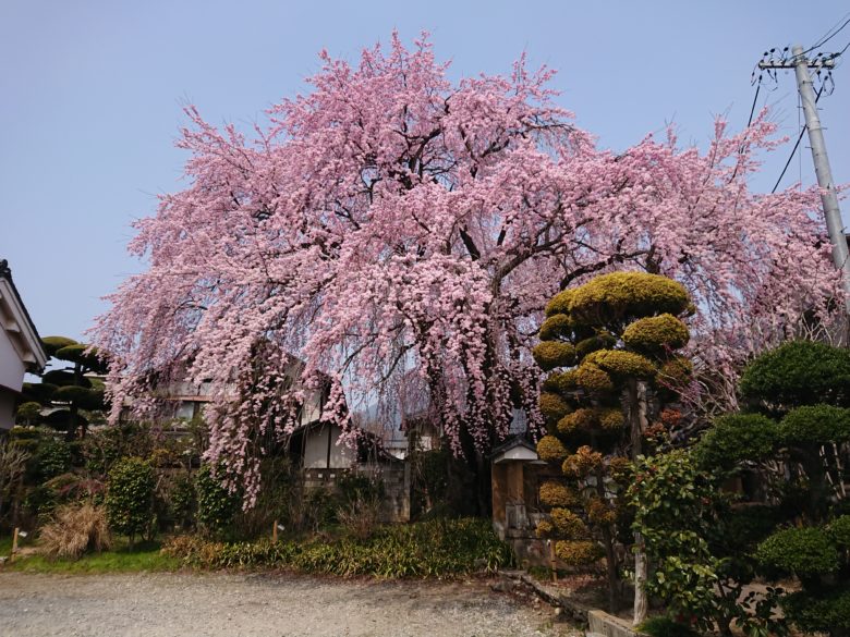 飯田市内のシダレザクラの中でも特に赤味が強いことで知られており、飯田市の指定天然記念物になっています。