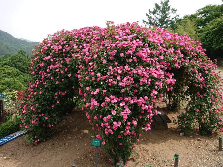 伊那市には桜だけでなく、バラを楽しめる場所もあります。最盛期のバラ祭り期間は協力金が必要ですが、それ以外のときは無料なのが嬉しいです。